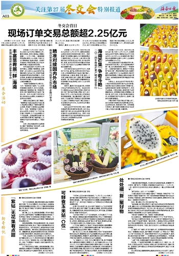■ 海南日报全媒体记者 邓钰“牛奶味,这玉米剥开皮就能吃。”12月5日,2024年第27届中国(海南)国际热带农产品冬季交易会(以下简称冬交会),海南农垦馆里,一篮子色彩缤纷的玉米稳稳占据海垦南繁种业展台的“C位”,其中名为“海垦玉520”的鲜食玉米引得参会嘉宾频频点赞。