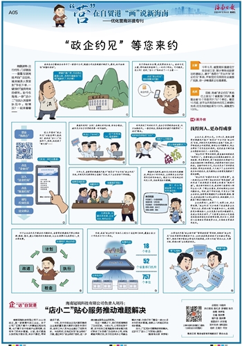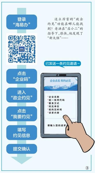 企业点名,有约必见。今年6月,海南省营商环境建设厅基于“海易办”平台开发“政企约见”系统,并制定约见规则向全省推广实施,进一步畅通政企沟通渠道,推动企业问题解决,给企业带来了实实在在的便利。这是我省不断完善企业服务体系的又一生动实践。