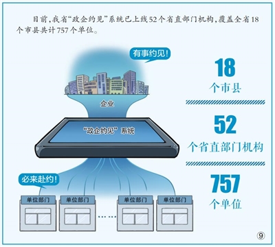 目前,我省“政企约见”系统已上线52个省直部门机构,覆盖全省18个市县共计757个单位。截至10月底,该平台共有百余件约见工单顺利完成,约见及时响应率为100%,满意度为100%。