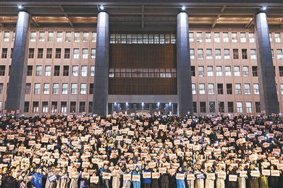 12月5日,人们在韩国首尔举行集会,要求总统尹锡悦下台。新华社/法新