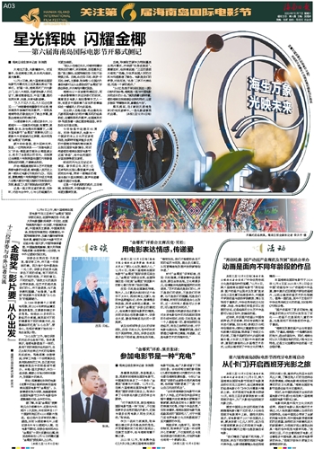 据了解,本届“金椰奖”竞赛单元分为故事长片、纪录长片和短片3大类别,共收到来自117个国家和地区的4330部影片报名。经过选片及评审团队精心遴选,共有14部故事长片、8部纪录长片与10部短片入围。在电影节期间,评委会将共同决出“金椰奖”十项大奖最终归属,获奖名单将在12月10日闭幕式暨“金椰奖”颁奖典礼上公布。