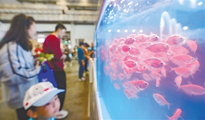 ③ 彩色的鱼苗展示吸引不少观众的目光。