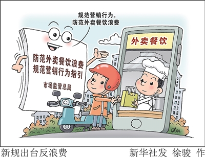 据新华社北京12月6日电 (记者赵文君)市场监管总局6日对外发布《防范外卖餐饮浪费规范营销行为指引》,进一步规范外卖商家营销行为,落实网络餐饮平台主体责任,防范外卖餐饮浪费,营造厉行节约、反对浪费的社会风尚。作为引导外卖餐饮行业落实反食品浪费责任的重要举措,指引结合网络餐饮行业特点,紧紧围绕防范外卖餐饮浪费的重点、痛点、难点问题,从规范外卖餐饮行业的营销行为入手,将反食品浪费举措落实到业务全流程的各环节。