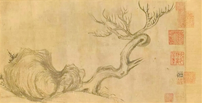 苏轼《枯木怪石图》局部。资料图