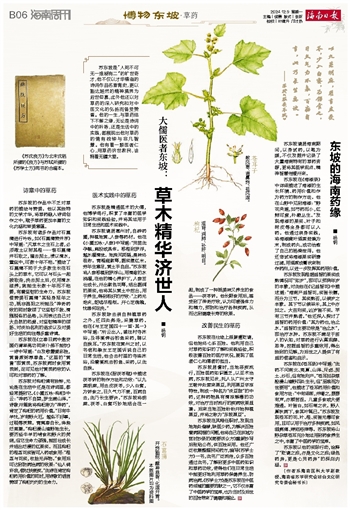 ■ 杨钥苏东坡是“人间不可无一难能有二”的旷世奇才,他不仅以才华横溢的诗词作品名垂青史,更以豁达超然的精神境界为后世仰慕,此外他还以对草药的深入研究和对中医文化的弘扬而备受赞誉。他的一生,与草药结下不解之缘,无论是诗词中的吟咏,还是生活中的实践,都展现出他对草药的情有独钟与非凡智慧。他有着一颗医者仁心,用草药济世救民,诠释着无疆大爱。