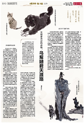 在苏轼所养的动物中,最有名的莫过于那只名叫“乌觜”的狗狗了。这是在儋州时的事情了。彼时,爱人朝云已经在惠州去世了,只有小儿子苏过伴随他渡海而“万里投荒”,再加上时时面临着缺衣少食的艰难局面,甚至有时候父子二人“相对如两苦行僧耳”。在这种情况下,乌觜就成为苏轼重要的情感依靠。