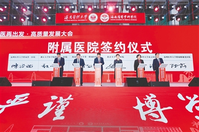 在“海医再出发”高质量发展大会上,附属医院签约仪式现场。本版图片均由海南医科大学提供