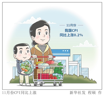 新华社北京12月9日电 (记者潘洁 胡林果)国家统计局9日发布数据显示,11月份,全国居民消费价格指数(CPI)同比上涨0.2%,涨幅比上月回落0.1个百分点;扣除食品和能源价格的核心CPI继续回升,同比上涨0.3%,涨幅比上月扩大0.1个百分点。食品价格涨幅回落,带动CPI涨幅回落。数据显示,11月份,食品价格同比上涨1.0%,涨幅比上月回落1.9个百分点。食品中,猪肉和鲜菜价格分别上涨13.7%和10.0%,涨幅均有回落;鲜果价格由上月上涨4.7%转为下降0.3%;牛肉、羊肉、食用油、禽肉类和粮食价格降幅在1.1%至13.5%之间。