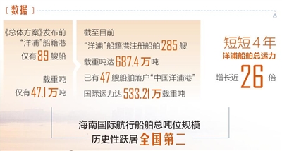 伴随着47艘国际船舶加入“中国洋浦港”,海南国际航行船舶总吨位已进入全国第二,刷新全省航运业历史最佳纪录。