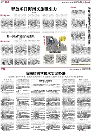 《海南省科学技术奖励办法》已经2024年11月11日第八届海南省人民政府第47次常务会议修订通过,现予公布,自2024年12月30日起施行。