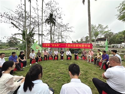 保亭黎族苗族自治县创新“亲加奔”(黎语意为“亲人来”)干群对话解难题活动,几十位村民代表围成一个圆,轮流提出在生产生活中遇到的问题,镇村相关负责人现场回应。