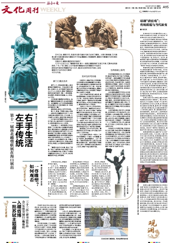 正如海南省雕塑艺术学会会长陈学博在本次展览的前言中所写,对传统雕塑艺术的传承和创新,不是复古和摹仿,而是对中国传统的文化进行认知、解读、重构。具有深邃中国传统文化内涵的雕塑艺术重意境、意象、神采、气韵,当代雕塑艺术家们应该充分感悟和解读这种艺术的精髓,并把它运用到自身的创作当中。