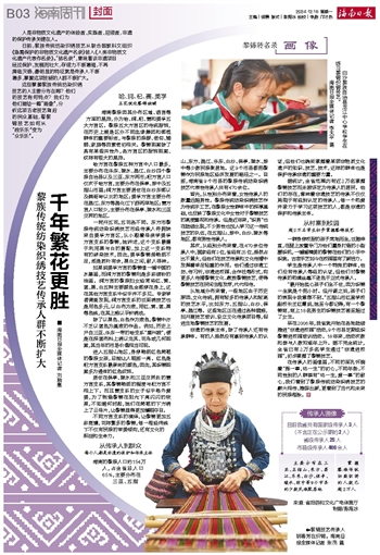 在传承人的画像里,不同的面孔怀揣着“择一事,终一生”的初心,不同年龄、不同性别的人群葆有“终一生,爱一事”的耐心,我们看到了黎族传统纺染织绣技艺的薪火相传、推陈出新,更看到了当代和未来的民族根脉。