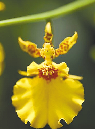 秋日的打安镇,阳光明媚,层峦叠翠。在兰花园导游的引领下,我们来到一个隐没于幽静山谷中的兰花种植园。步入园中,一个姹紫嫣红、千姿百态的兰花世界蓦然映入眼帘。举目望去,各种枝叶、各种颜色、各种花瓣的兰花排列出一个个整齐的方阵,一阵阵兰花的清香扑面而来。花农们正在忙碌着浇灌、施肥、修剪、嫁接、采摘工作。此情此景使我想起了孔子那句千古名句:“芝兰生于深林,不以无人而不芳”。活泼可爱的文心兰,朝气蓬勃的朝阳兰,紫色贵气的石斛兰(洋兰),或浓或淡,或素或华,或雅或艳,多姿多彩,香韵绽放!最美的还是金黄色的文心兰,也称跳舞兰,它的形状就似穿着黄色罗裙的俏皮少女在欢快地舞蹈。面对这色彩斑斓的兰花海洋,我下意识地低吟:“兰花一片春带雨,云想衣裳花想容”。身边一位文友,也情不自禁地朗诵起来:“晨风先发苑中兰,五颜六色次第开,百花轻牵侬衣袂,轻移莲步到跟前。”