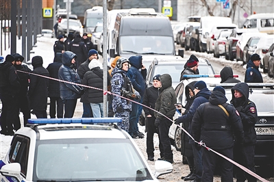 12月17日,在俄罗斯首都莫斯科,调查人员聚集在一栋发生爆炸的居民楼附近。新华社发