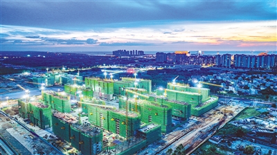 ■ 海南日报全媒体记者 林书喜在儋州滨海未来社区(一期)项目施工现场,26栋已全部封顶的主体建筑正在进行室内外装饰装修施工;马路对面,润泽自贸港国际信息港项目一期动力中心也已全面封顶,未来将有1万多台高性能算力服务器和配套网络设备在这里高速运行;而旁边的环新英湾黄冈高级中学已于今年9月招生开学……