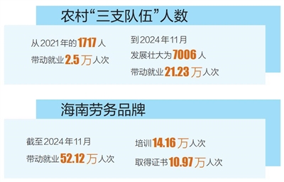为发挥他们各自掌握用工需求信息、身怀一技之长、致富带富能力强的优势,2024年初,海南省印发“三支队伍”服务倡议、关于加快培育“三支队伍”的通知,广泛调动“三支队伍”带动就业积极性,助力提高“三支队伍”服务水平。