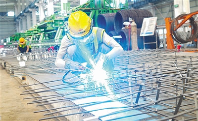 在中铁建设建筑发展(海南)有限公司装配式建筑生产车间,工人加紧生产装配式建筑产品。