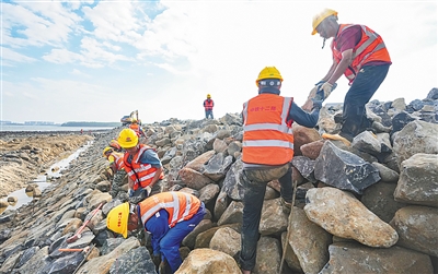 本报临城12月19日电(海南日报全媒体记者贾磊 吴心怡)12月14日,在临高县金牌港开发区港口及配套工程项目建设现场,辽阔的海岸线上,工人们正在紧张施工。巨型的起重机高耸入云,机械臂在空中划出一道道优美的弧线,安全有序地进行吊装作业。工人们穿梭在各个工区,机器轰鸣声和工人的吆喝声交织在一起,现场一派繁忙景象。据了解,该项目除引桥段外,一期护岸工程基槽开挖和堤心石回填已全部完成。“金牌港开发区港口及配套工程项目,是海南省委、省政府高度关注的自贸港重点项目,分三期建设。项目建成后,这里将成为海南自贸港物流贸易的重要港口运输枢纽。”该项目负责人说。