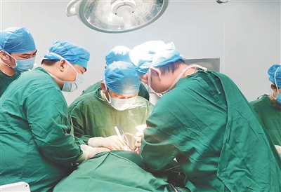 何和与(中)在为患者实施医院首例肩关节置换术。本组图片均由