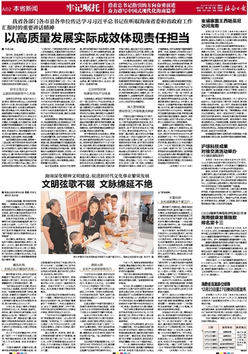 在鹿回头风景区,西哈莫尼观看欢快的竹竿舞表演,登上观海亭平台俯瞰三亚城市景观。现场还展出了上世纪70年代西哈努克太皇携夫人到访海南时,在三亚留下的珍贵影像。此次参观,西哈莫尼也在一张张新旧照片中了解三亚发展及琼柬两地人文交流成果。