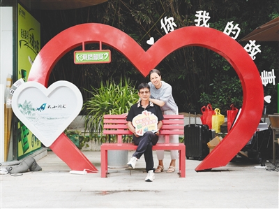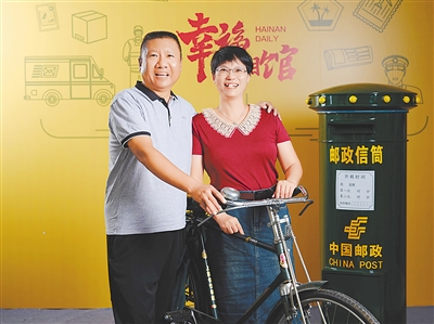 ⑤ 中国邮政海南分公司员工卢志强、王金连夫妻在 “幸福照相馆”留下温馨的合影。