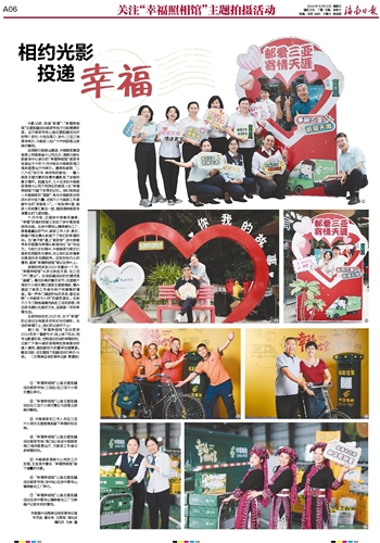 光影记录,投递“幸福”!“幸福照相馆”主题拍摄活动邮政专场于日前圆满收官。此次邮政专场公益主题拍摄活动历时两个多月,分别在海口、琼中、三亚三地落地举办,为邮政人和广大市民游客记录美好瞬间。由海南日报报业集团、中国邮政集团有限公司海南省分公司主办,海南日报社新媒体中心承办的“幸福照相馆”邮政专场首站于今年10月中旬在中国邮政海口海府路营业厅内举行。墨绿色邮筒,“二八大杠”自行车、帆布制的邮包……融入邮政主题元素的场景布置彰显了浓郁的复古情怀。拍摄当天,几十位来自中国邮政海南分公司不同岗位的邮政人在“幸福照相馆”内留下珍贵的记忆。他们有刚进入中国邮政的“萌新”,有与中国邮政共同成长的中坚力量,还有不少为邮政工作奉献半生的“老邮政人”。一张张照片里,邮政人的故事汇聚在一起,展现海南邮政快递事业的飞速发展。