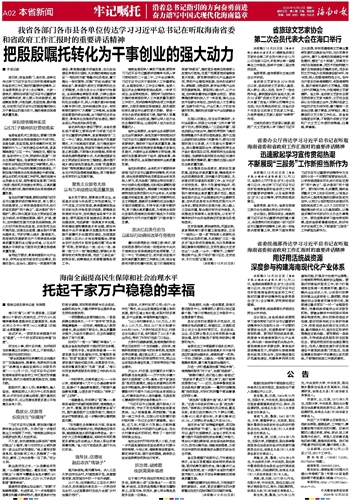 连日来,我省各部门、各市县、各单位传达学习习近平总书记在听取海南省委和省政府工作汇报时的重要讲话精神,以及省委常委会(扩大)会议精神。大家一致表示,要深刻领悟习近平总书记重要讲话的精神实质、核心要义和实践要求,继续解放思想、开拓创新,攻坚克难、稳步推进,切实把习近平总书记的殷殷嘱托转化为干事创业的强大动力,推动海南自贸港高质量发展。