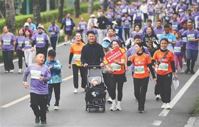 家长携带孩子参加欢乐跑。