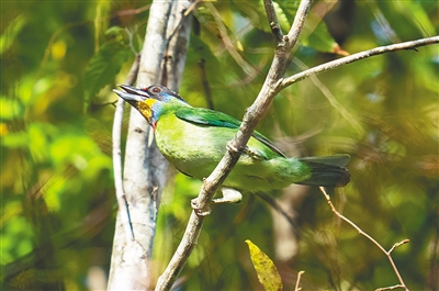 在海南,听鸟鸣的好去处不止雨林。“唧唧唧……”在海口市美兰区演丰镇演中洋,海南东寨港国家级自然保护区管理局林业工程师冯尔辉循声望去,5只黑翅长脚鹬,正气定神闲地站在浅水区里。他介绍,除了黑翅长脚鹬这些“常客”,也能在海南发现一些“稀客”。每年9月至次年3月,大批候鸟抵琼,正是“观鸟”“听鸟”的好时节。“叽叽叽”“喳喳喳”“哩哩哩”“咕咕咕”“嘀嘀嘀”……或站在枝头,或立于海边,或停于红树林,数百种鸟儿开嗓合唱,似泉水叮咚,如琴瑟和鸣,奏响独属南国的《百鸟朝凤》曲。