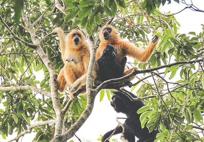 离开黄金海岸线,深入琼岛腹地,你将与神秘的热带雨林不期而遇。“咕咕咕……”走进海南热带雨林国家公园,耳边不时传来山鹧鸪的鸣叫声。“咯咯咯”“哒哒哒”,则是浪漫的雌鸟雄鸟二重唱。“呜,呜,呜……”树冠层传来一阵口哨般的清亮长音,这是海南长臂猿吹响的“起床集结号”。“啾啾”“吱吱吱”“叽叽喳喳”……林中百鸟争鸣,与虫儿低唱、百兽啼叫混在一起,奏响充满生机的雨林乐章。
