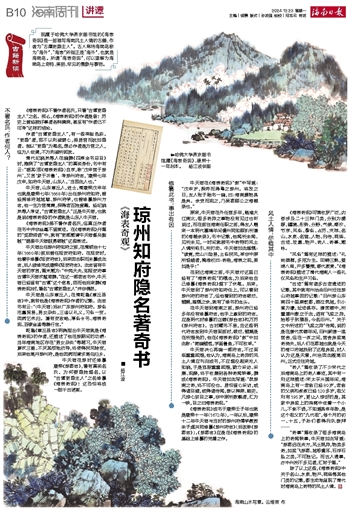 在到达海南之前,牛天宿对这里已经有了“海表奇观”的概念,为后来他自己修纂《海表奇观》埋下了伏笔。后来,牛天宿到了琼州府知府任上,可以看到琼州府的府志了,但他看到的府志破烂、错漏,感慨之余,就有了修书的念头。