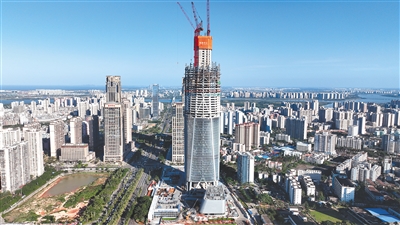 海南中心项目建设高度已达282米,奋力打造自贸港国内国际双循环交汇点的重要窗口。