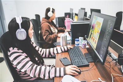 12月25日,陵水海风小镇的数字文化产业园区,一家游戏公司的工作人员正进行产品开发。