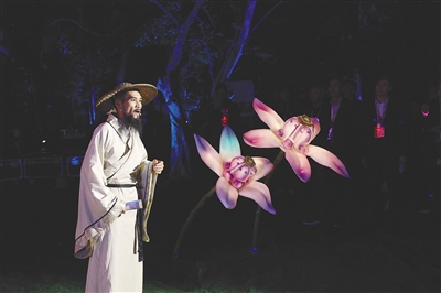 “说不尽的东方美,非常有巧思。”站在东坡桥上远眺,观众张疆禁不住感叹。在不远处,大片树林在灯光的巧妙烘托下呈现出绿色、黄色、玫红色,展现出独具特色的美学气韵。
