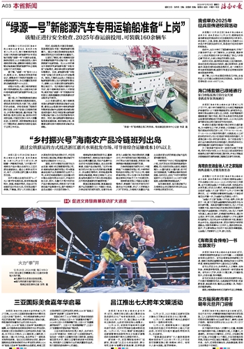 记者还了解到,海口海事局在服务保障新能源汽车运输方面一直在探索新方法新思路。在2024年的春运中探索研究新能源车辆“专船专班”运输模式,满足春运期间新能源车辆需求。目前,新能源车辆“专船专班”运输已形成常态化的运输模式。随后,又推动企业投入平板驳运输新能源车辆以加大新能源车辆运力,缓解2025年春运期间新能源车辆过海压力。在为船舶办理相关证书时,海口海事局安排专人对接指导,高效完成“绿源一号”的船舶所有权登记、船舶国籍登记和船舶最低安全配员证书核发。