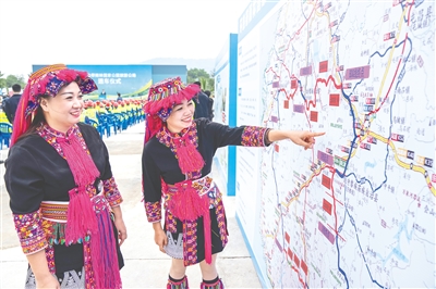 12月29日,环热带雨林国家公园旅游公路通车仪式现场,当地村民在现场展板上找到了自己的位置。海南日报全媒体记者 李天平 摄