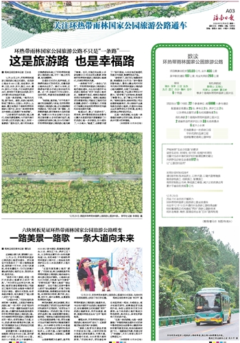 让陈泰锋颇为自豪的,是环热带雨林国家公园旅游公路通车后,与去年开通的环岛旅游公路遥相呼应,标志着海南正式构建起“两环”旅游公路新体系,和环岛高速、高铁、国道共同组成全岛“五环”路网格局。