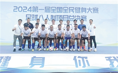 海南美兰足球队在第一届全国全民健身大赛足球八人制项目总决赛现场合影。