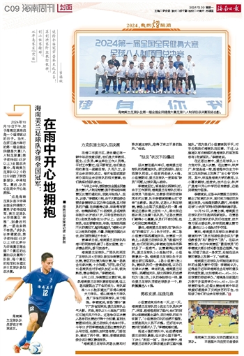 2024年10月19日下午,对于海南足球来说是一个值得铭记的日子。当天,在浙江温州举行的第一届全国全民健身大赛(八人制足球赛)男子老将组(45岁以上)全国总决赛中,海南美兰足球队以2:0的比分战胜了陕西新城队,夺得冠军。赛后,队员们在雨中开心地拥抱。