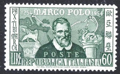 意大利1954年发行的马可波罗诞辰700周年纪念邮票。