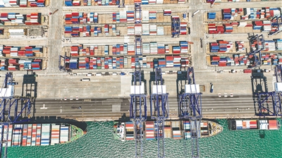 3月21日,集装箱货轮在洋浦国际集装箱码头装卸货物。 海南日报全媒体记者 陈元才 摄