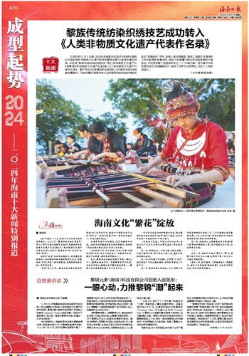 北京时间12月5日晚,在巴拉圭首都亚松森召开的联合国教科文组织保护非物质文化遗产政府间委员会第19届常会通过评审,决定将“黎族传统纺染织绣技艺”等三项非物质文化遗产从《急需保护的非物质文化遗产名录》转入《人类非物质文化遗产代表作名录》。遗产项目从《急需保护名录》转入《代表作名录》在我国尚属首次。这标志着在海南传承久远的黎族传统纺染织绣技艺走出“急需保护”序列,荣登人类非遗殿堂,展现了海南在非遗保护工作中取得的显著成效,体现了我国履行责任和兑现承诺的大国担当,为世界贡献了非遗保护的又一个“中国方案”,成为展示中华优秀传统文化的靓丽名片,体现了世界文化多样性,见证了人类的创造力。(文字整理/陈奕霖)