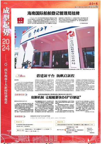 11月29日,海南国际船舶登记管理局在洋浦揭牌成立。启动仪式上,海南国际船舶登记管理局为“盛畅777”轮颁发该局成立后的首份“中国洋浦港”船籍港船舶所有权证书。“登记服务处负责‘中国洋浦港’籍船舶登记,承担签发有关海事证书、文书工作。”张丹竹说,除登记服务处外该局还设有综合办公室、航运发展促进处、质量管理处。