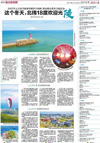 ■ 海南日报全媒体记者 王迎春山海之约入眼皆景,旅游景区玩法多样、特色活动丰富多彩、消费场景不断“上新”……连日来,伴着冬日的暖阳,陵水黎族自治县冬季文旅市场“热气腾腾”,“珍珠海岸”焕发勃勃生机。