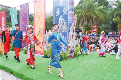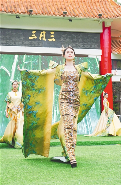模特展示精美黎锦。