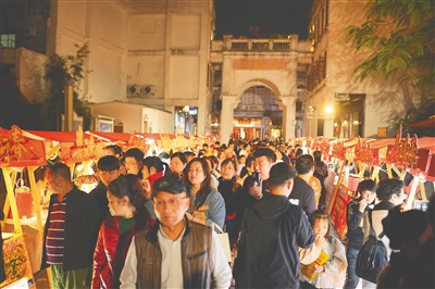 2024年12月31日,海口骑楼老街东坡国潮游园会活动举办。现场开展新春祈福、品尝美食等活动。海南日报全媒体记者 张茂 摄