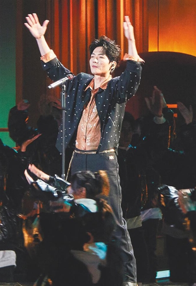 歌手陈楚生在湖南卫视芒果TV跨年晚会上表演。