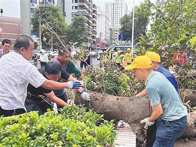 超强台风“摩羯”过境海口后,海口市综合行政执法局执法队伍在救灾一线。