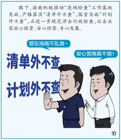 当然,涉企行政检查,“规范”只是基本要求。期待海南在涉企监管领域不断探索创新,妥善把握精度,着力提升效能,努力做到既不缺位,也不越位,持续推动营商环境优化,充分激发市场活力,为自贸港建设注入源源不断的动力。
